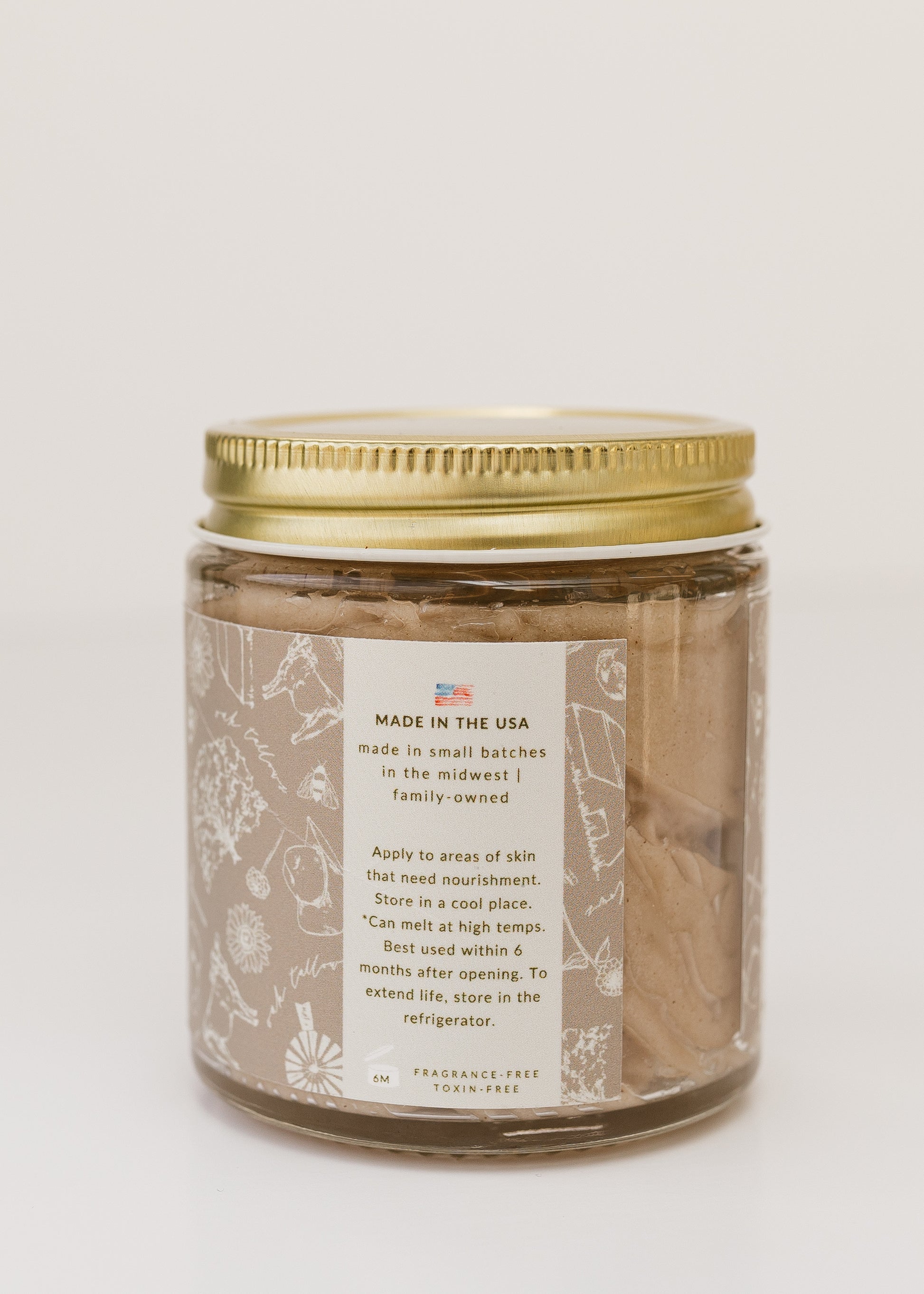 Ingredients: 100% Grass-Fed Beef Tallow, Organic Coffee Grounds, Organic Vanilla, Organic Cold-Pressed Castor Oil, Organic Arrowroot Powder